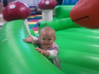 No, I'm not talking about those treacherous exercises... There's a company near us that has all sorts of bouncy houses and slides (and even an obstacle course) for the kids to run around, jump, and climb on. I got a month pass a while back for super cheap and just activated it this past week. I decided it'd be a good outing for the Littles whilst the Biggers are at school...